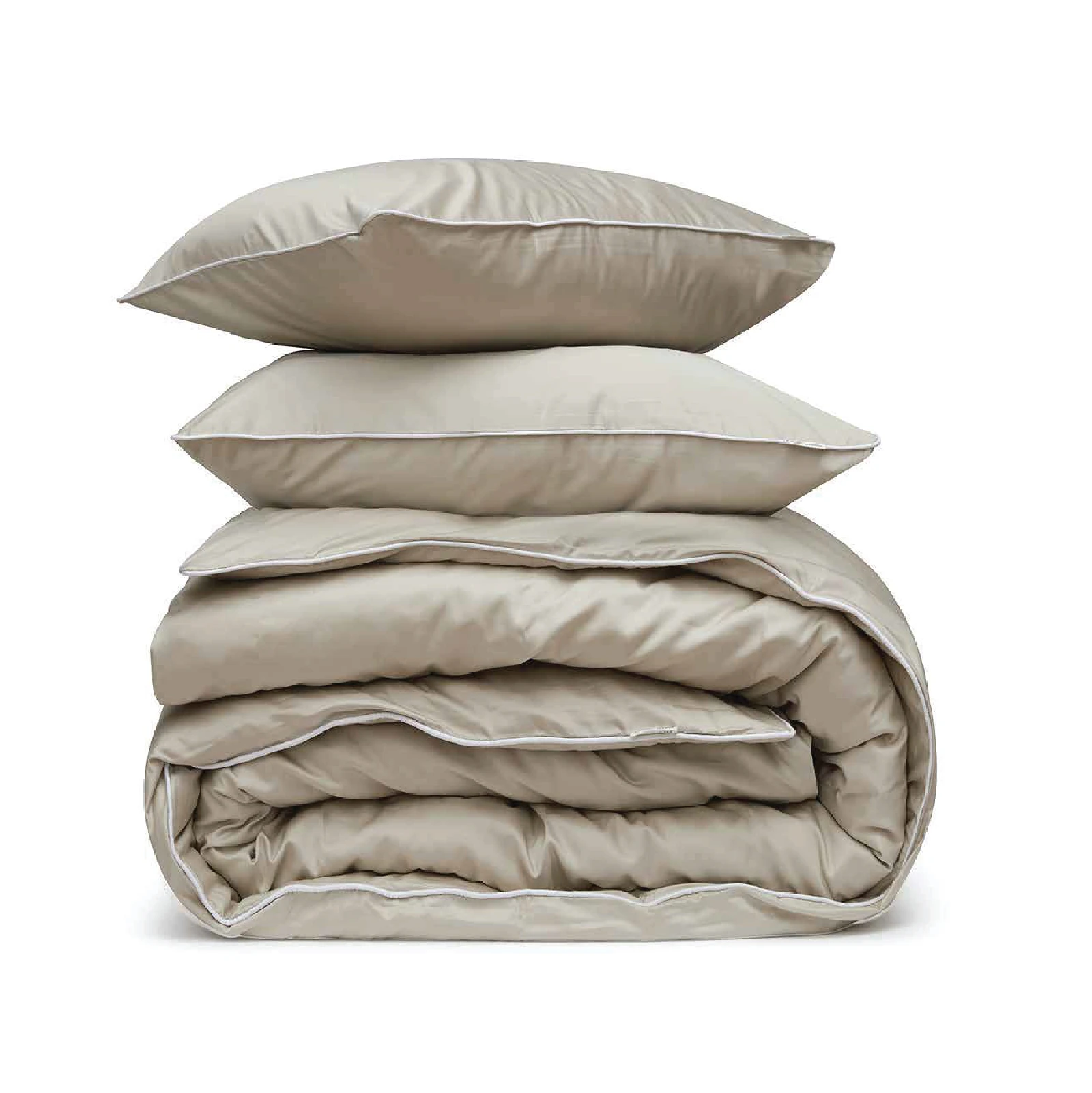 סט סאטן 500 בג’ עם פספול לבן Luxury